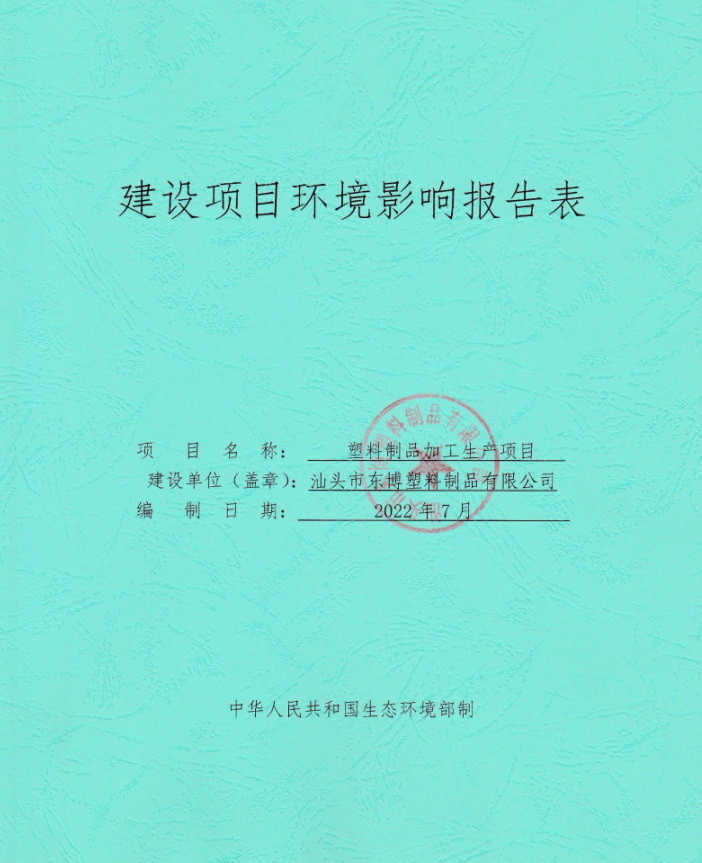 汕頭市東博塑料制品有限公司塑料制品加工生產項目環境影響報告表